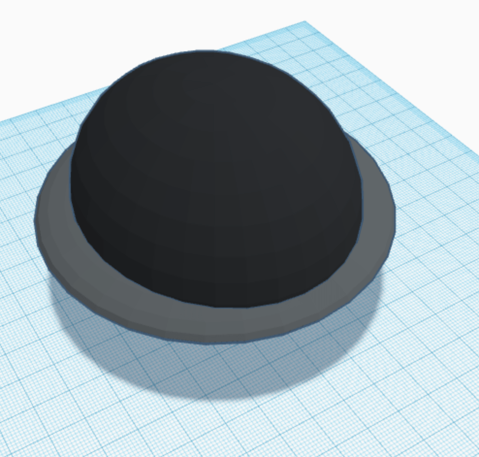 Oh my god, the bowler hat. This one made me actually wanna drink all the NyQuil I had in my apartment. Not just mine, but my roommates too, hoping it would take me out. It took me an hour to figure out how to make it so that when I the flat bill, it wouldn’t cut into the head part. But either way, it happened and its cool. I still think it’s an ugly hat, but at least it’s not a top hat. I used a cylinder and half sphere for the head part, and then a ring an another ring hole to make the bill.