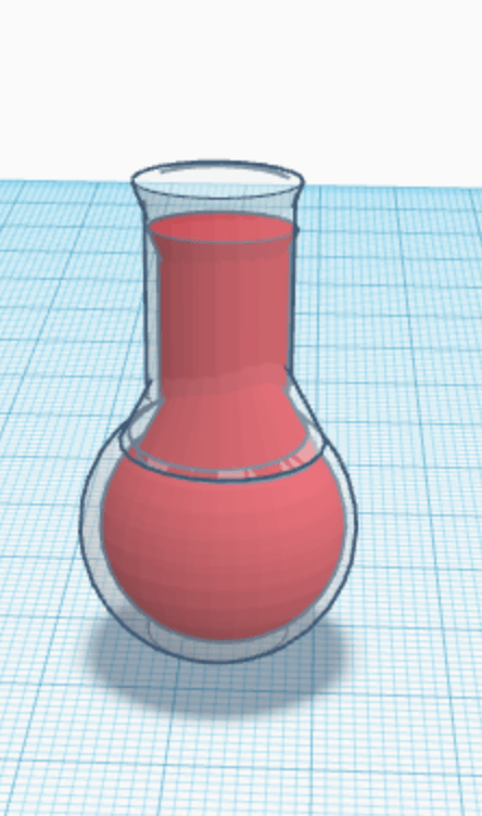 Okay so for the flask, I’m like 100% sure I did it wrong but it looks right so I just went with it. I used a sphere, two cones, a cylinder and a cube hole, and then duplicated the original shape and made it slightly smaller and put it inside for the red liquid. I didn’t do as much work as you showed but it looks alright.