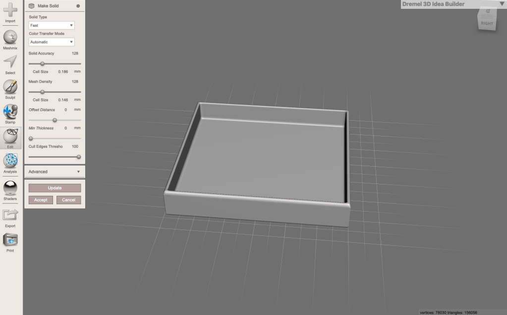 Finally, I “sliced” it, which doesn’t make much sense to me cause its not like it cut into pieces, and i didnt get any screenshots of that cause I forgot and I already deleted all the .stl files and stuff off my computer and I dont wanna do it again so you’ll just have to believe me about it.